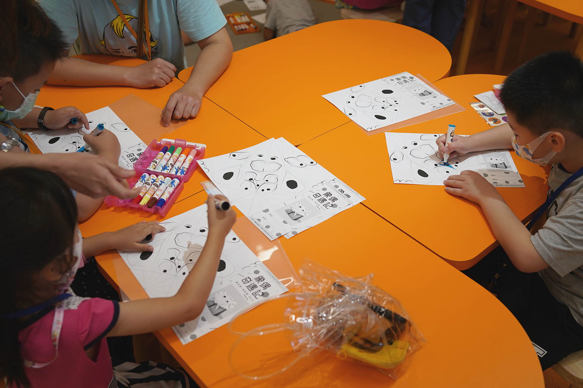 We led children to design themselves elephant dolls through Origami and coloring. After they finished designing their own work, we scanned their paper with iPad.