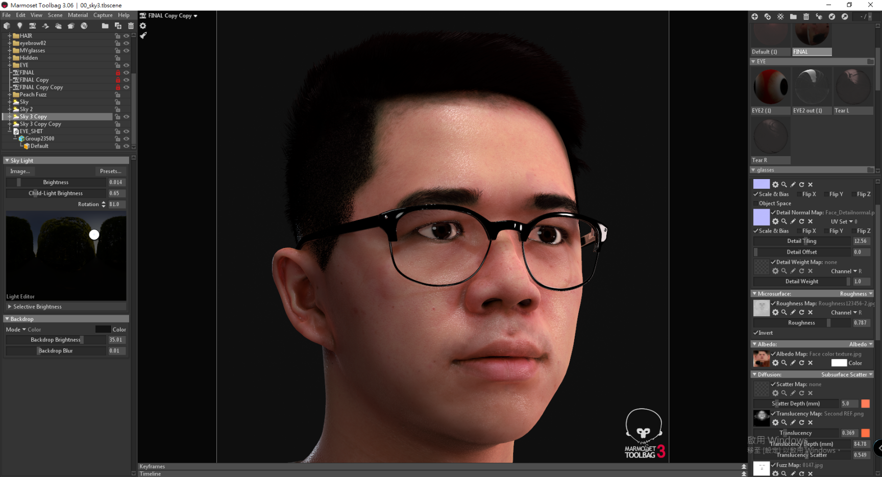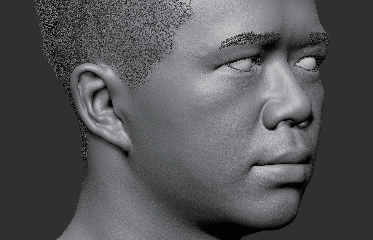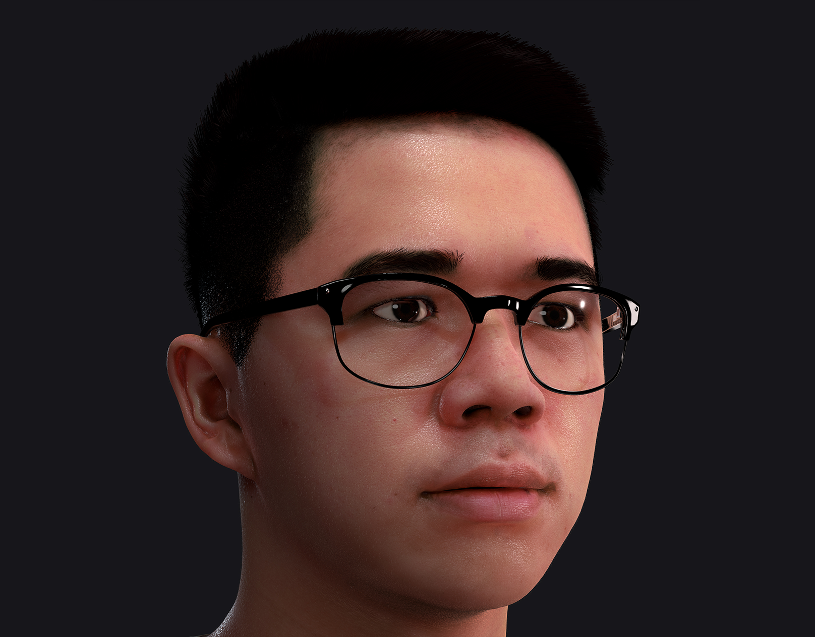 I used photogrammetry to scan my own face. This device was used when I was working on my previous company in Taiwan. I use 120 monocular cameras to catch facial detail to render 3D mesh. And retopology, paint skin detail become to model for game engine.